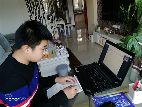 初中部网上直播授课,师生在线问答,指导、检测;小学部老师利用班级群每日发放课程表,具体安排每个时间段的学习内容。学习内容涵盖了文化课学习、音乐课、美术课、眼保健操与体育锻炼时间,还安排了观看“新闻联播”的时间,旨在让孩子们关心时事,开阔眼界与心胸,培养爱国主义情怀。