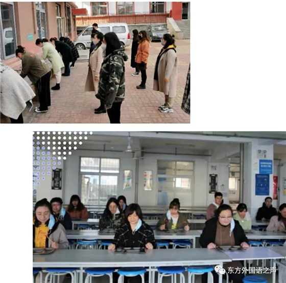 学生就餐分为食堂就餐和班级就餐两种形式,以避免人员聚集。就餐前,在餐厅外依次排队洗手,就餐时学生间隔距离一米,统一坐西向东。在餐厅进出口处,均铺设消毒地垫,并由专人进行消毒。