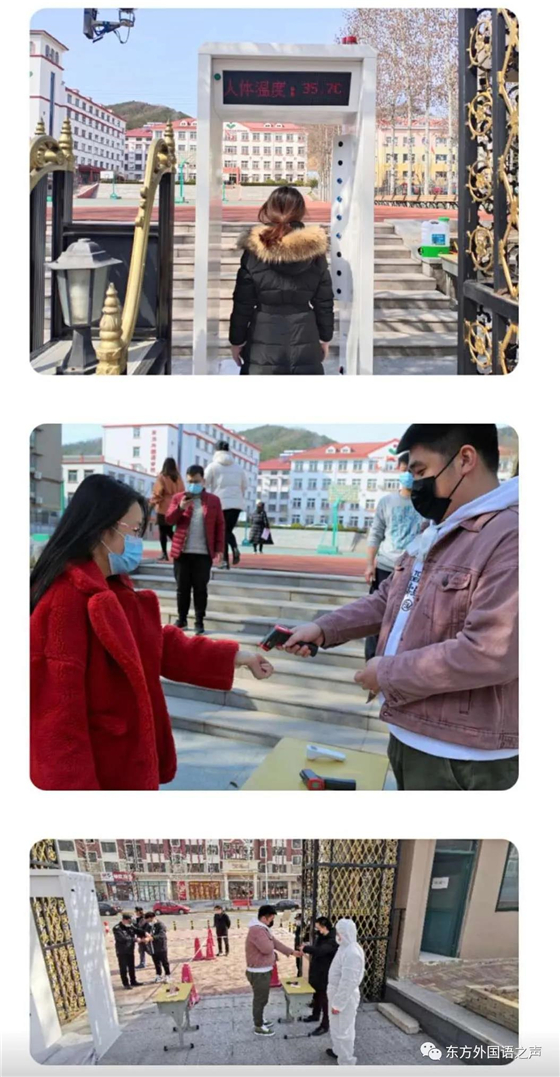 学校门口设有遥感体温检测门与辅助体温枪测温通道,由学校中层以上干部、部分教师、安保人员组成的秩序引导组和体温检测组设立警戒线,组织学生分成两列纵队,依次有序进入测温通道测量体温。