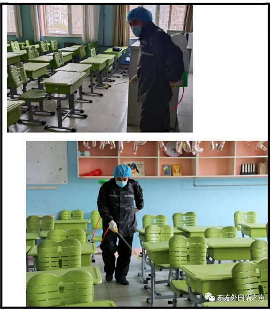 消毒小组负责人组织人员对发热学生所在的教室、相邻教室和活动过的场所进行空气消毒。发热学生离开隔离室后,将隔离室进行全面彻底消毒杀菌。