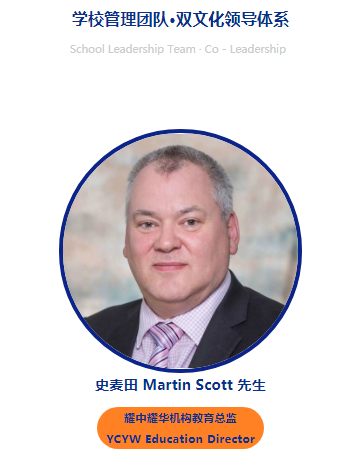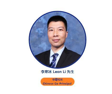 华籍校长李寒冰来自辽宁省沈阳市,具备地理教育学、英语语言学双学历背景,1996年师范毕业后,从事教育工作20余年,在公办学校及私立国际学校都有丰富的从教经历,历任地理教师、团支部书记、负责学生管理的领事、总领事、中方课程校长、初小学校长,对从小学至高中的各学段都有从教和管理的经验,并完成剑桥大学国际教育领导力课程,获得优异等级认证。