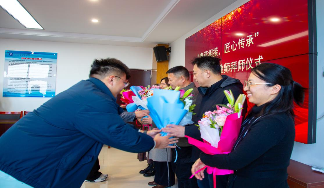 随后的献花、拜师礼与敬茶环节,将整场活动推向高潮。一束鲜花,满载徒弟对师傅培育之恩的诚挚敬意;一杯清茶,映照求教心性的纯净与为师品格的清正;三次躬身拜师,则郑重表达对师道尊严的自觉恪守与对师徒情谊的终身珍视。一系列仪式,深刻诠释了青蓝相接教育传承的时代使命,象征着学术精神与传承薪火在此刻庄严接续,标志着青年一代在师傅的引领下,正式开启治学修身、传承开拓的教育新征程。