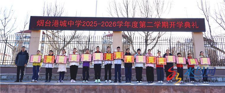 水母网3月10日讯(通讯员 盛杰)3月9日,烟台港城中学全体师生齐聚绿茵操场,隆重举行2025-2026学年第二学期开学典礼,新学期的征程就此拉开序幕。典礼在嘹亮庄严的国歌声中正式开启,鲜艳的五星红旗迎着春风冉冉升起。港中学子容光焕发,正以崭新的面貌、满腔的热情奔赴新学期的征程。