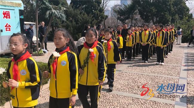 激昂的《国际歌》旋律缓缓响起,全体师生肃立致敬。铿锵的歌声穿越时空,回荡在烟台山的松柏间,对革命先烈深切缅怀。