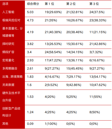 (图:《2024-2025年度中国量化投资白皮书》,2025年量化机构战略优先级最高的三项能力建设方向)